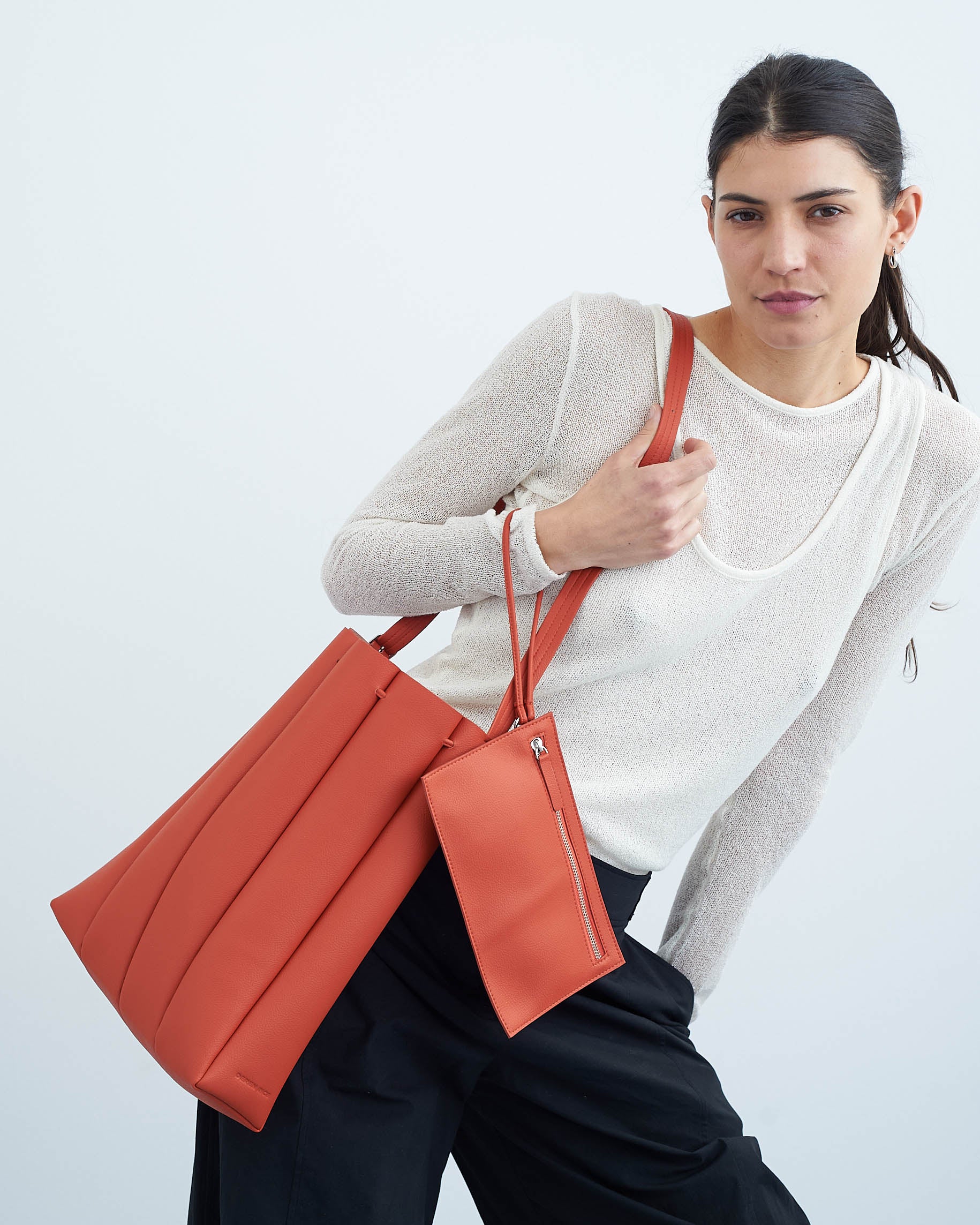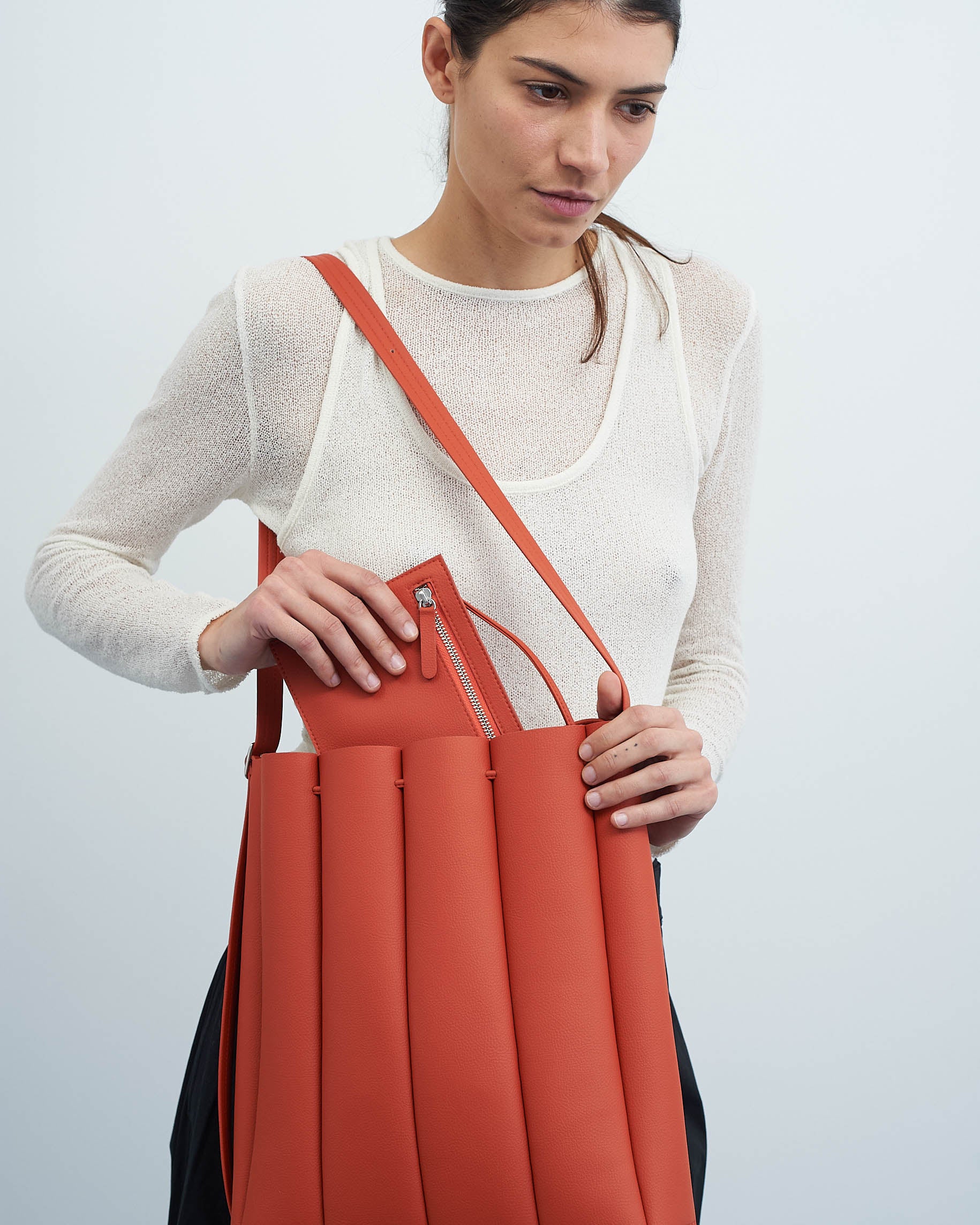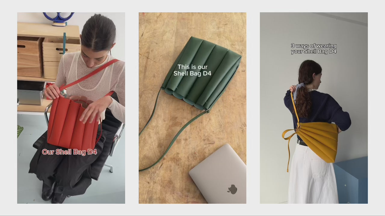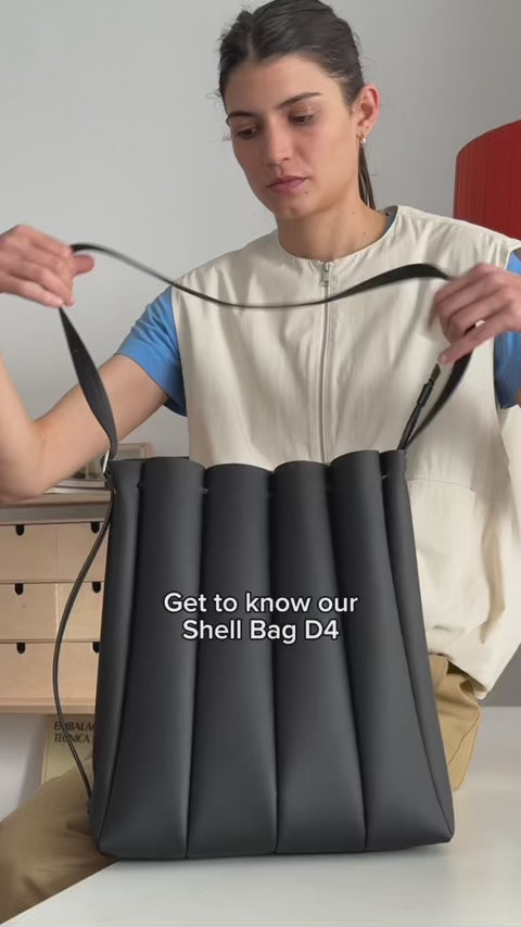 The Shell Bag D4 has a metal carabiner inside where you can attach your keys, preventing them from getting lost inside the bag. What stands out most about this bag is the variation in its shape through different straps and the metal buckle. It closes through the thinner strap on the inside, and when you do, its shape changes. You can wear it closed as a crossbody or handbag. Or also open as a shoulder bag and a crossbody. You have 4 options with a single bag, in addition to the extra bag inside. This bag is perfect for your everyday needs.