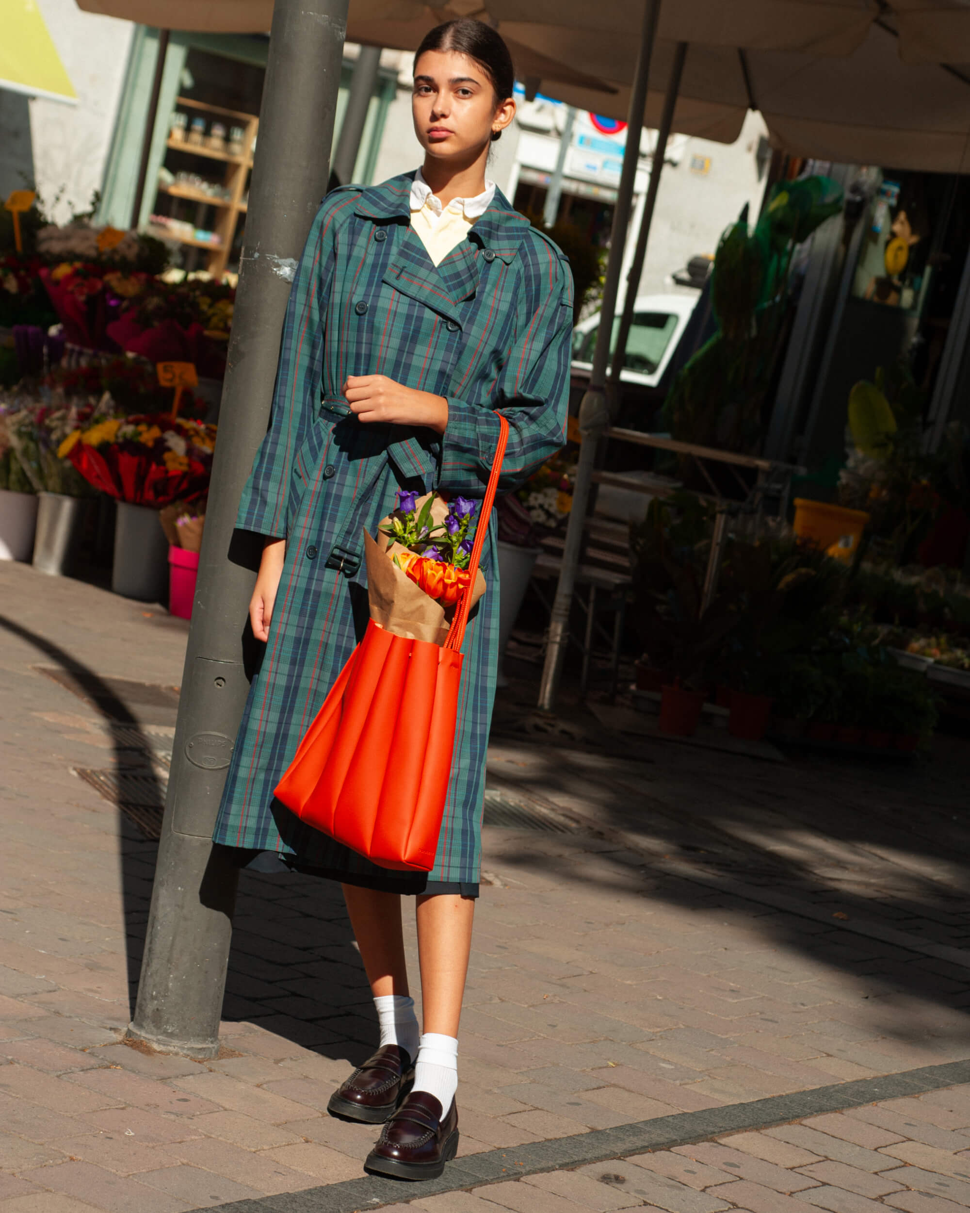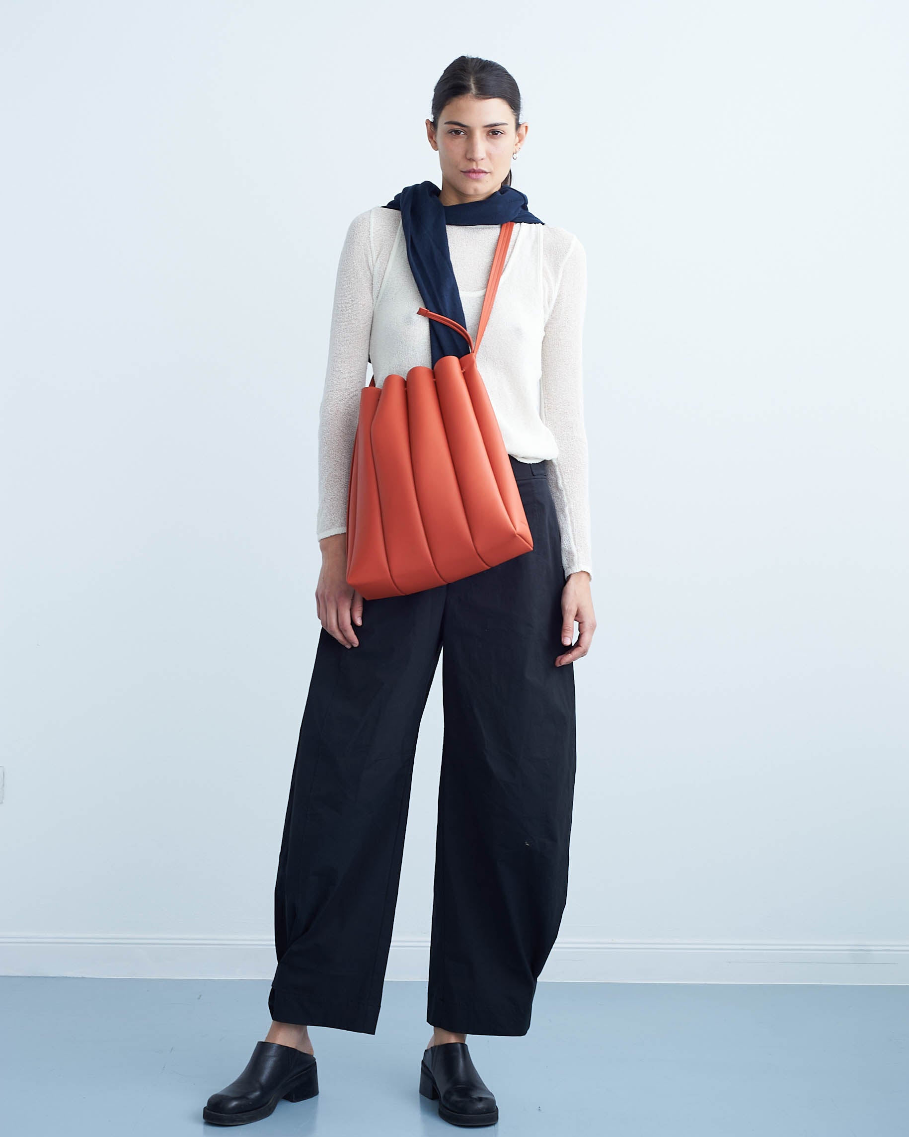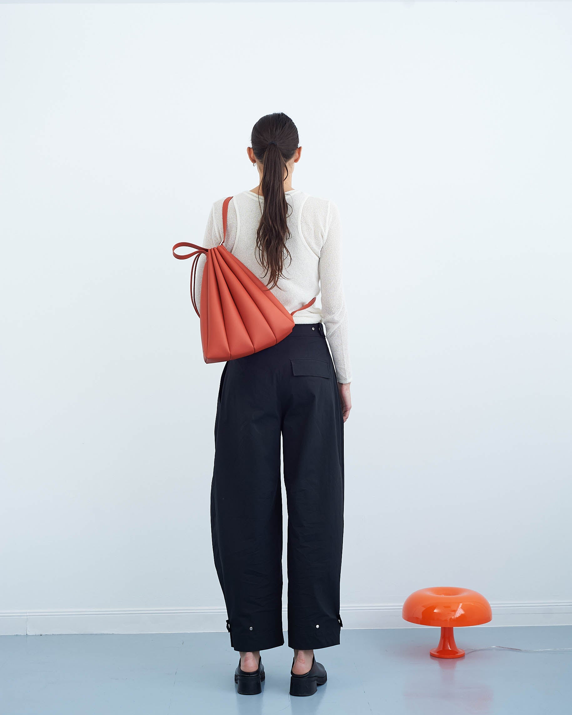 The Shell Bag D4 has a metal carabiner inside where you can attach your keys, preventing them from getting lost inside the bag. What stands out most about this bag is the variation in its shape through different straps and the metal buckle. It closes through the thinner strap on the inside, and when you do, its shape changes. You can wear it closed as a crossbody or handbag. Or also open as a shoulder bag and a crossbody. You have 4 options with a single bag, in addition to the extra bag inside. This bag is perfect for your everyday needs.